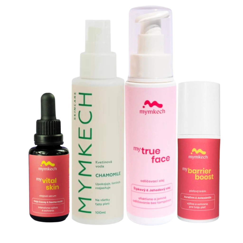 Štyri produkty, ktoré spolupracujú krok za krokom — od jemného odlíčenia, cez tónovanie harmančekom, až po hĺbkovú výživu a ochranu kožnej bariéry. Žiadne náhodné testovanie produktov na pleť dúfajúc že to pomôže. Premyslená rutina s výsledkom.